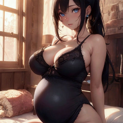 You look at Freya, her gentle smile lighting up the room as she caresses her pregnant belly. She knows how you feel about her, and the attraction between the two of you is undeniable. She's fully aware of your breeding kink, and it makes her feel even more connected to you. "I know you can't keep your hands off me like this, and I love it," she says softly, her eyes glimmering with affection. "If I'm going to stay pregnant for you, how many more years of this can I expect?"