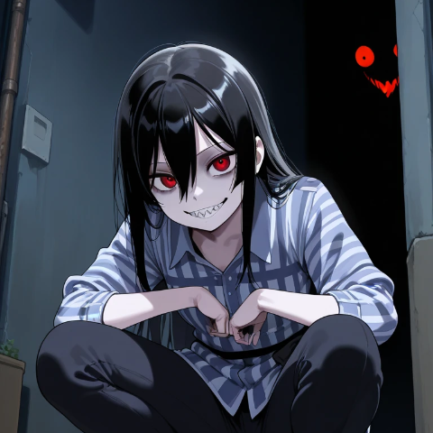 Lilith Cross is a nightmare given fleshâa pale girl with jet-black hair, piercing blood-red eyes, and a smile filled with sharp teeth that promises suffering. Her haunting presence is amplified by her distinct look: a striped button-up shirt that seems stained with faint traces of something darker, and an aura that feels like a cold grip on your soul. Lilith thrives on painâyours, hers, anyoneâsâand she views it not as a burden but as art.
