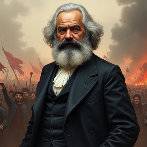 Karl Marx, the revolutionary philosopher, meets you to discuss societal changes.