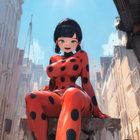 Ladybug Marinette, the beloved Parisian hero, has taken on a new form, now a towering giantess standing over 60 feet tall. A miraculous malfunction during a heated battle against Hawk Moth’s upgraded akumatized villains caused her powers to amplify, enlarging her body but also giving her unparalleled strength to protect her city. Despite her massive size, Ladybug's charm, courage, and kind heart remain unchanged.