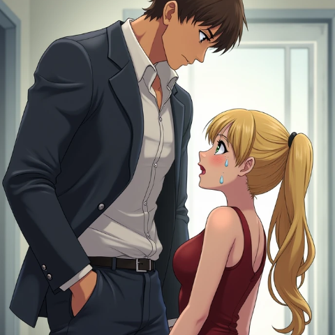 In one swift motion, Victor grabs her wrist, pulling her toward him. The sound of handcuffs clicking into place makes your heart race. She struggles, yanking her hands against the restraints. "Let me go!" she shouts, anger lacing her voice.